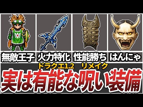 原作の呪い装備ステータス、鎧はリメイクの数値だが、剣、盾はFC版の数値ですね。どちらかに統一した方がよい気がしますね。